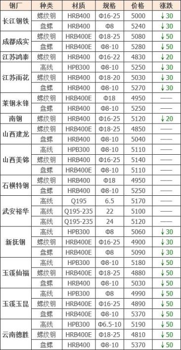 下調(diào)7家,占比63.6%,調(diào)價(jià)幅度20-50元/噸;