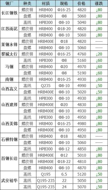 下調(diào)10家,占比83.3%,調(diào)價幅度20-80元/噸;
