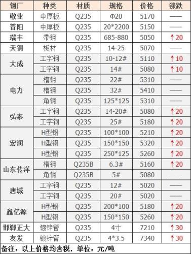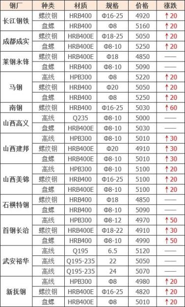 18日廣東河源德潤(rùn)鋼鐵到廠漲60:鋼筋切粒3550;邊角料,新鋼板料3520;純鋼筋頭,直鋼筋3500;模具鋼、料頭圓鋼、軌道鋼、火車輪3500;硅鋼片停收;冷軋、熱軋、碎料沖子3450;優(yōu)重3500;鍛打料、馬蹄鐵3500;重廢3450;機(jī)械生鐵、高碳鋼、鑄鋼件、生熟混裝3450,厚剪3400,不含稅