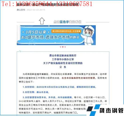 突發(fā)!唐山全域性封控,鋼市影響升級
