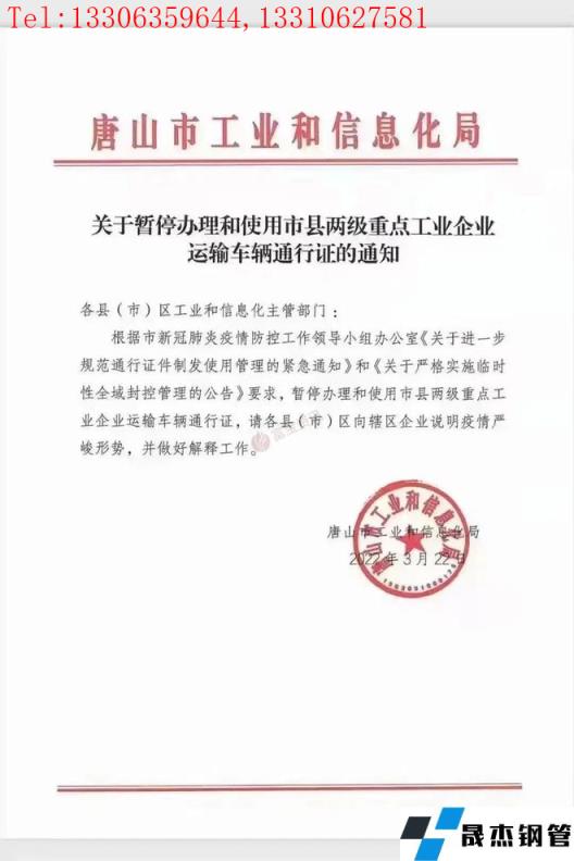 針對現(xiàn)階段唐山市轄區(qū)26家長流程鋼企調研了解如下:截止目前,唐山長流程鋼企在生產方面目前面臨最嚴重的問題仍然是由于交通管制帶來的原料進廠、成品材外輸。關于21日發(fā)布了重點工業(yè)企業(yè)辦理運輸車輛通行證的通知,據(jù)調研了解,目前長流程鋼企在文件下發(fā)后均積極申請,但相關部門對于審批相對謹慎,所以整體并未真正落地,僅個別精密管廠家少數(shù)原料運輸車輛得以批復,但也不能完全緩解整體原料緊張的局面。